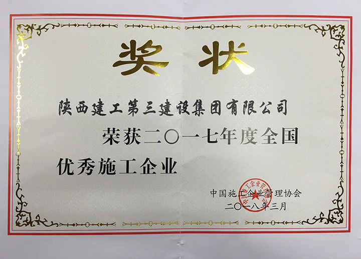 近日,從中國施工企業管理協會傳來喜訊,集團公司被評為2017年度全國優秀施工企業,這是繼2016年后再次榮獲該項榮譽。
